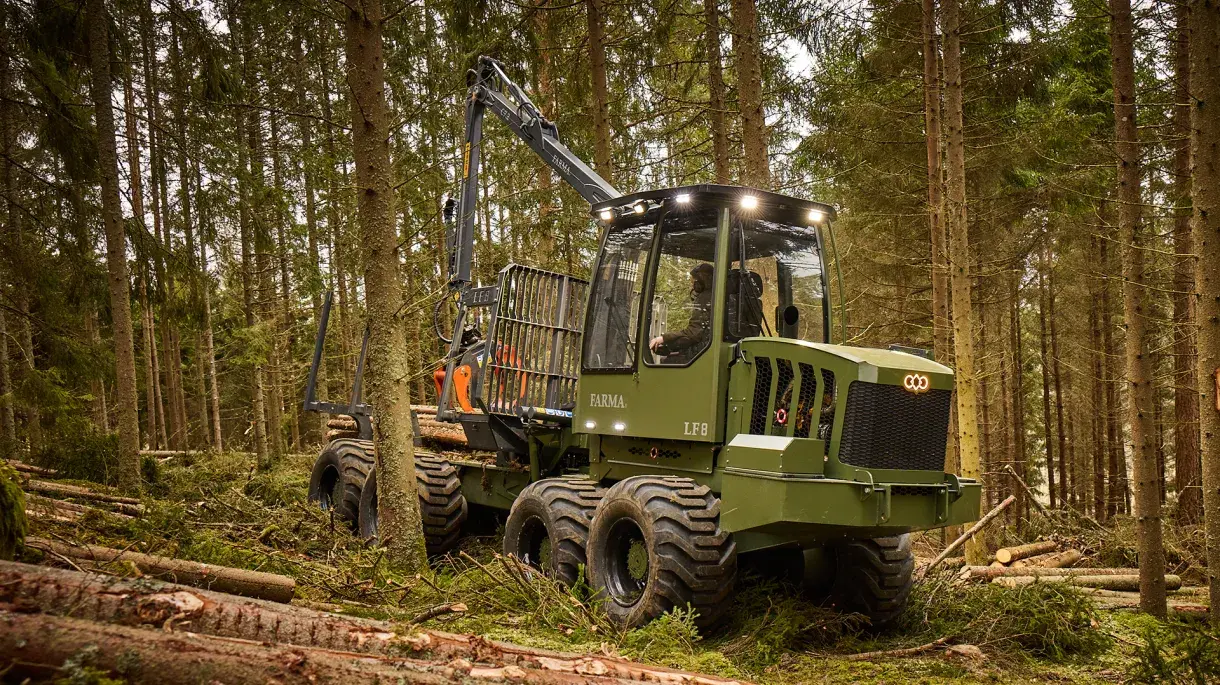 The FARMA LF8 is a compact 8-wheel forwarder with good manoeuvrability in rough terrain and dense forests. With the LF8, you get an efficient thinning forwarder with high performance.